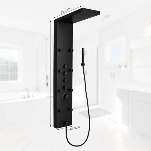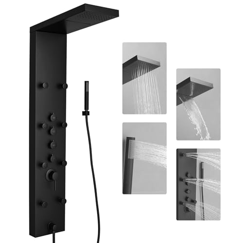 Convenient Individual Function Controls: There are 5 knobs on the shower panels , the top 4 knobs control 4 shower functions (Overhead Rain Shower, Overhead Waterfall, Jet Spray, Hand Shower). Turn the bottom knob to turn on and adjust the temperature and water volume. All functions work independently, ensuring that your shower panel system delivers the best performance every time.