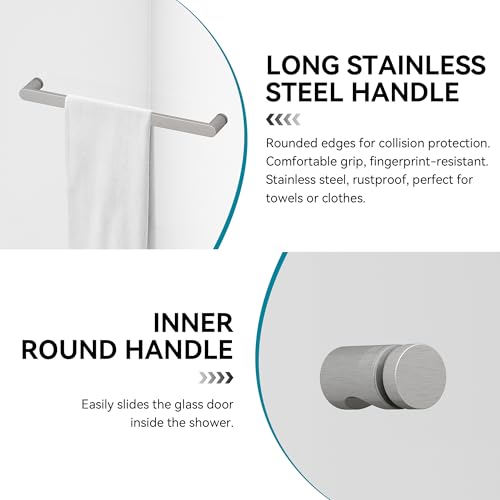 Convenient Towel Bar and Handle: Features an external stainless steel towel bar for easy towel access. The space-efficient internal round handle ensures comfortable operation in narrow spaces, enhancing shower convenience