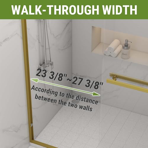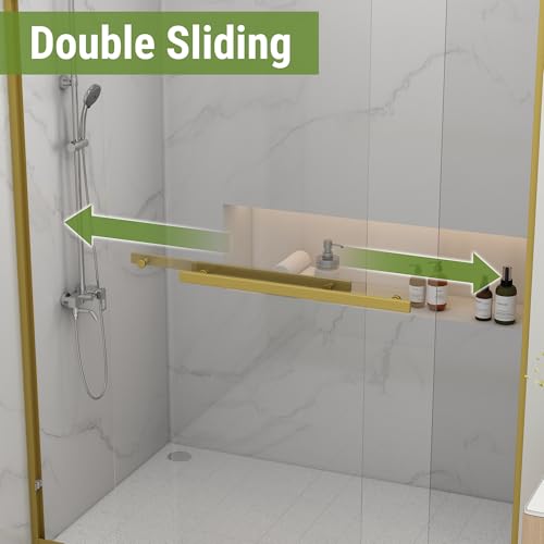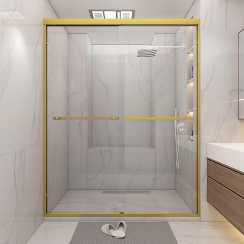 Bathlink Shower Door 56-60" W * 72" H, Brushed Gold Double Sliding Shower Door with 1/4"(6mm) Tempered Glass, Shower Glass Door Easy to Clean