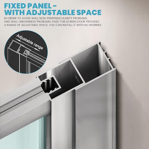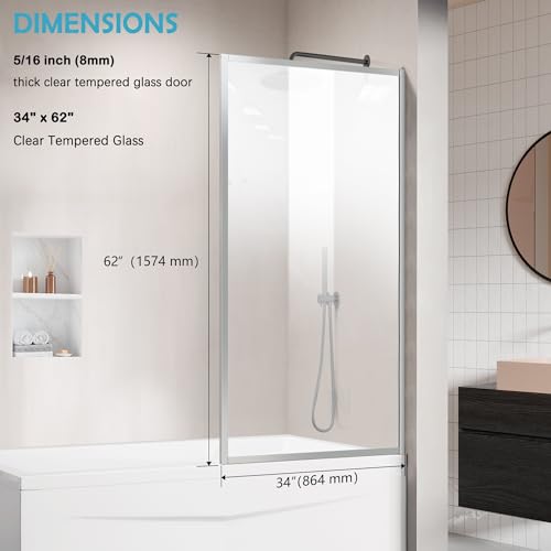 Fixed Panel: 34"W x 62"H fixed tub screen provides a relaxing shower experience, sturdy bottom rail support keeps the shower panel stable