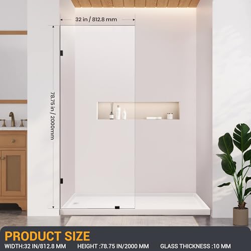 Shower Door Dimensions - 32 inch width, 78.75 inch height, clamp color matte black. Frameless design and smooth surface&edge create a simple, relaxing shower place in the walk-in bathroom.