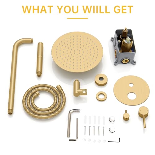 Included - The shower kit includes an 10" round fixed shower head (304 stainless steel), Multifunction (2-in-1) hand-held shower head with Sprayer (brass), 13.9" shower arm wand (304 stainless steel), 59" shower hose (304 stainless steel), shower holder (brass) and Shower Faucet Rough-in Valve Body (brass) - all you need for having the ultimate shower experience!