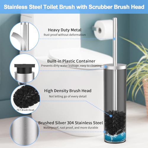 Heavy Duty Stainless Steel: Birdster toilet bowl brush and holder is made of 304 stainless steel with a brushed silver finish, which is modern and beautiful and ensures a better feel and experience in the process of using it, waterproof and rust-proof, as well as being very easy to clean and will not be deformed or broken.
