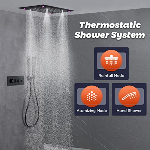 ?????LED Shower System?The 24 inch rainfall shower head size of the smart shower system is 400mm *600mm, the rectangular large shower head can bring a large flow of water, and the LED light on the overhead shower system will change with the water pressure, so you can enjoy the bathing fun. Doozoler luxury modern shower system will make you fall in love with the feeling of bathing!