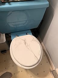 BLOFDE Round Toilet Seat Wood Toilet Seat Prevent Shifting with Zinc Alloy Hinges American Standard Size Toilet Seat Easy to Install also Easy to Clean(Round,Marble)