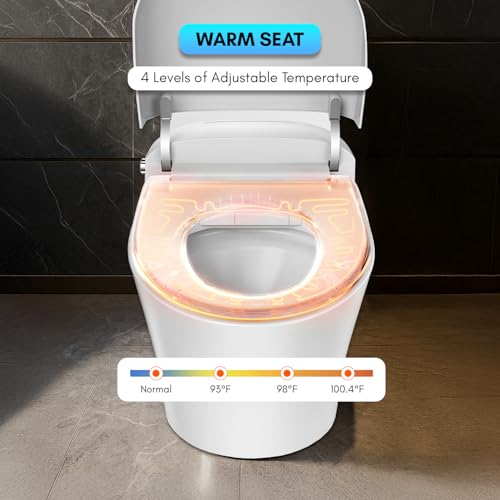 Heated Seat & Temperature Control: Experience comfort with this luxury toilet’s four-level heated seat. Perfect for cold mornings, this smart bidet toilet offers adjustable warmth. A must-have for modern smart bathrooms and electric toilet setups