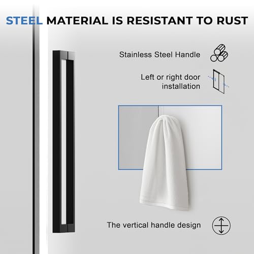 HIGH QUALITY PARTS: All the accessories of this frameless shower door are made premium. Stainless steel top guide bar has strong corrosion resistance. The high-quality hardware guarantees a rust-free structure that will not crack or scratch. As a pull, it fits nicely in an adult hand to operate the door, feels just right, not too small nor too large.