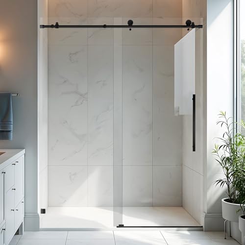SMOOTH SLIDING: Our shower door features stainless steel rollers that ensure smooth and effortless sliding. The frameless shower door slides to the right or the left, depending on your preference.