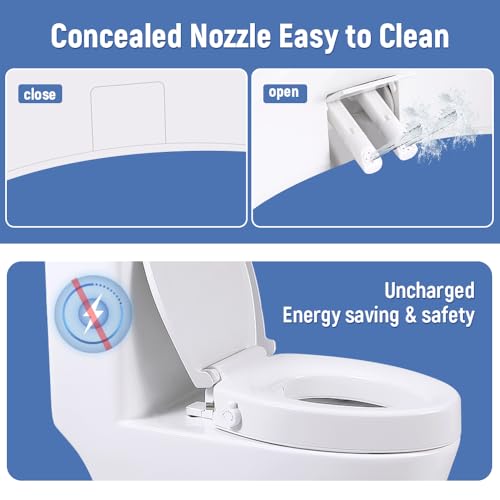 ??????????????????This Raised toilet seat for seniors fit elongated toilet; Non-electric bidet (Ambient Water) with dual nozzles and metal Inlet