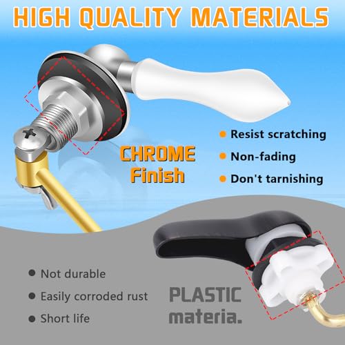 ?Material?The universal front mount toilet handle is constructed with a brass arm, providing strength, durability, and resistance to corrosion. Additionally, the handle is made of metal and features a white finish, enhancing its visual appeal that complements bathroom decor. The combination of the brass arm and metal handle not only ensures functionality but also adds a touch of elegance to the toilet.