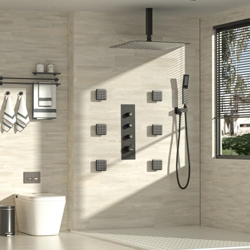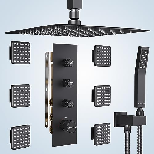 ?OVERSIZED SHOWERHEAD & UPDATED 3 INCH BODY JETS? -Ultra-thin, minimalist 16-inch oversized shower head, bring you spa-like shower experience, mix air and water to simulate the feeling of natural rainfall, enjoy the high flow shower space, and it also can accommodate two people to bathe at the same time. UPGRADED 3" LARGE SPA BODY JETS for a rejuvenating hydrotherapy experience.