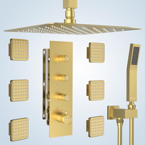 Oversized shower head and updated 3 inch body jets, Ultra-thin, minimalist 16 inch oversized shower head, bring you spa-like shower experience, mix air and water to simulate the feeling of natural rainfall, enjoy the high flow shower space, and it also can accommodate two people to bathe at the same time, Upgraded 3 inch large spa body jets for a rejuvenating hydrotherapy experience