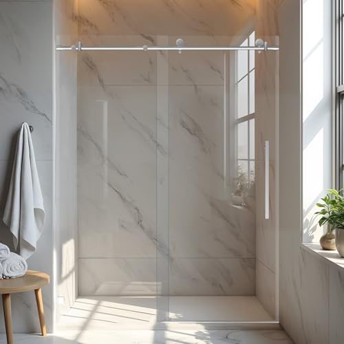 ADJUSTABLE FRAMELESS DESIGN: This frameless shower door is 56-60 inches wide, 4 inches adjustable size, and 76 inches high to accommodate a variety of bathroom layouts. The sleek frameless design offers a modern, minimalist look that saves space and complements any decor.