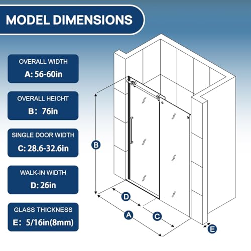 EASY INSTALLATION: Botwinkles bathroom shower door include detailed installation instructions and all accessories, the glass is pre-drilled for easy installation. Make sure the shower door opening spans 56-60 inches (other sizes available upon request).