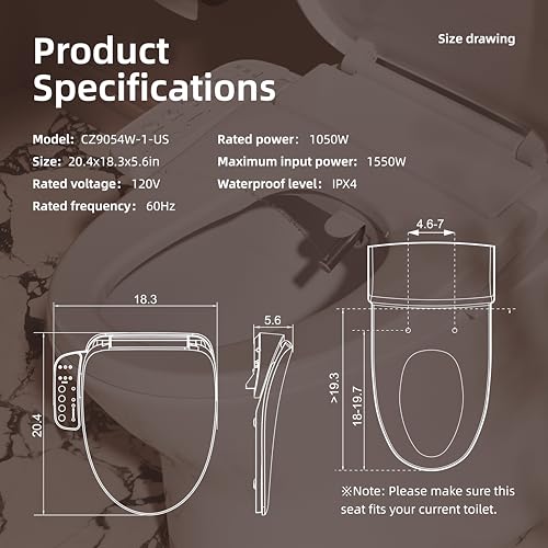 QUICK INSTALLATION, SEAMLESS UPGRADE – TRANSFORM YOUR BATHROOM TODAY?Compatible with most elongated toilets, this unit installs easily without the need for a plumber. Includes a GFCI plug and standard 3/8” T-valve for fast, secure setup