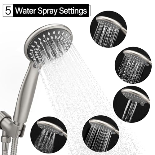 HIGH QUALITY: The shower head is made of premium environmental ABS material with high tech satin brushed nickel finish; the extra long 59" shower hose makes you feel super flexible when using this handheld shower head set in any bathroom.