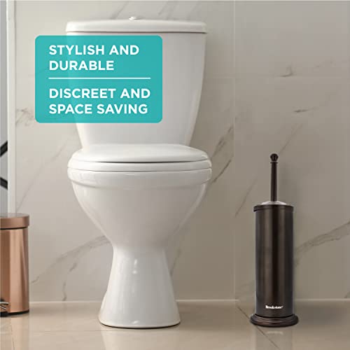 SPACE SAVING - This toilet brush & holder features a slim and compact design to save space in your bathroom. The brush is placed into the holder when not in use for discreet storage, while keeping it close to hand for cleaning the toilet bowl as needed.