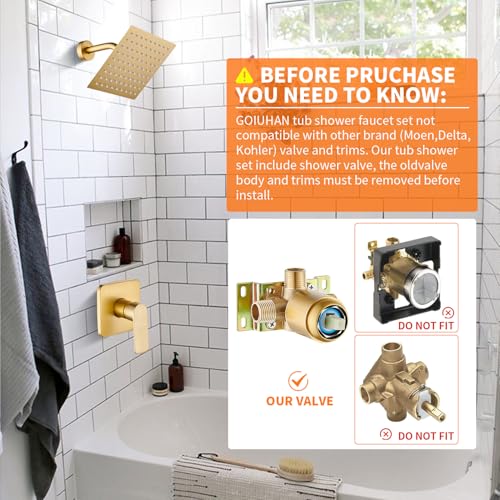 GOUXIUHAN shower trim kit not compatible with other brand valve and cartridges. The old shower valve must be removed if install this kit