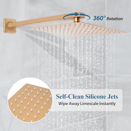 Quality Assurance: Gasecoet all-metal rain shower system set with solid brass shower valve is rust-free and long-lasting, with SUS304 standard stainless steel shower head and self-cleaning silicone nozzle, you can install it with confidence!