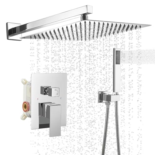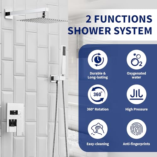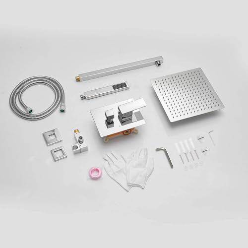 High Quality: Faucet body is made from sturdy brass , ensuring high quality and longevity,Includes: 10 inch Square rain shower head?304 stainless steel?, handheld shower head?Brass? tub faucet ,shower arm, shower hose?PVC??shower holder?Brass?, water control valve?Brass?,easy to operation.