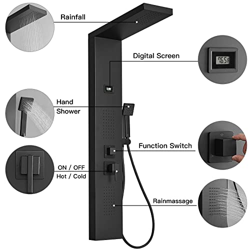 ?Multi-Function Shower Panel?This 3-in-1 Shower panel system gives you the most comfortable shower experience. Temperature of the water can be displayed directly, so you could adjust water temperature for lower the scalding risk ( battery not included?need to buy separately).