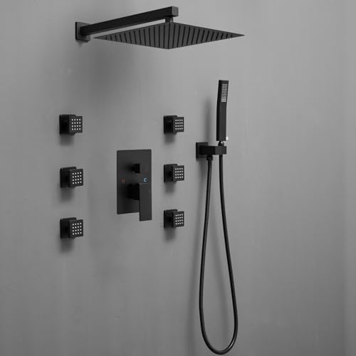 Full Body Massage shower System: Shower system with 6 pcs angle adjustable body sprayers. Each sprayer with 16 small nozzles jets powerful water flows to reach every inch of your skin and massage your body, washes away your fatigue and offers a massage shower experience.
