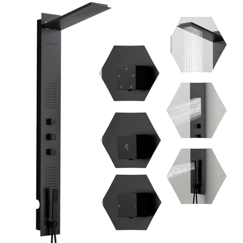 ?Multi-Function Shower Panel?The elegant modern black shower panel is the attractive presence of each bathroom. This independent shower panel has 4 shower modes: Waterfall, Rainfall, Massage jets, and Handle Shower Head. And the two massage jets can be used separately.