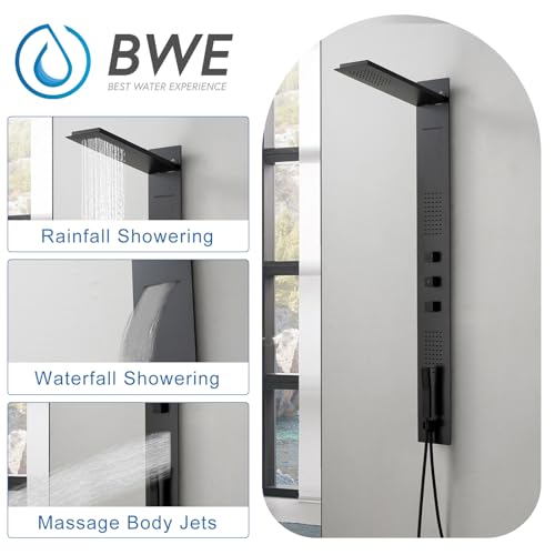 ?High Quality Material?The high quality shower panel frame is made of DURABLE-304 stainless steel. No rusty, Long service life time. Environmental material, safe to use. All-in-one shower panel tower system designed for wall mount installation