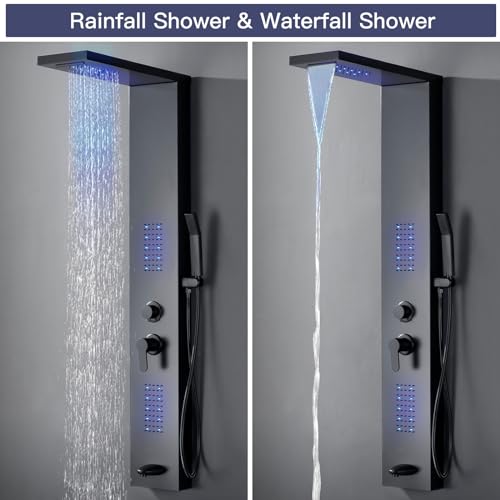 Blue LED Lights: The shower system with blue LED lights instantly transforms your bathing space into a dream world, which is peaceful and calming, and the light is powered by the water flow.