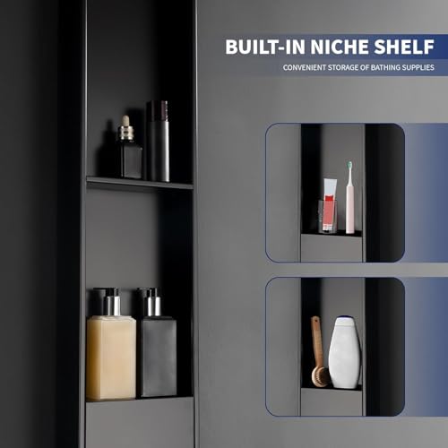 ?Convenient shower niche? The shower panel is equipped with a shower niche, which can be used as a storage space for placing toiletries and other items. Niche design can also effectively utilize bathroom space, making the bathroom look more tidy and orderly. The unique embedded design allows you to avoid the risk of shower products falling off