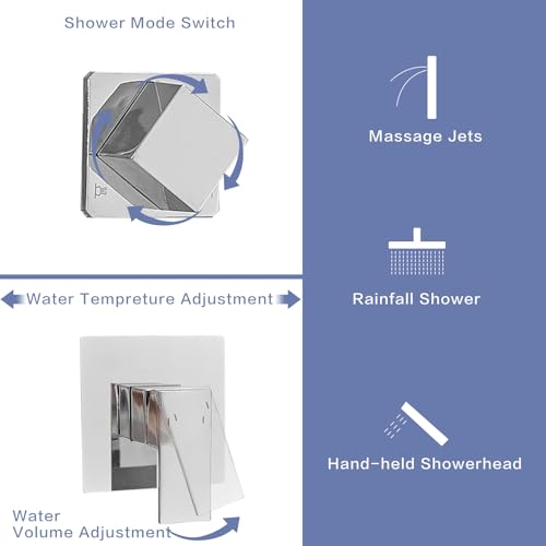 3 IN 1 Shower System: This shower panel has 3-functions, including rainfall shower head, hand shower and body sprayer. The multifunctional design can meet your different showering needs.