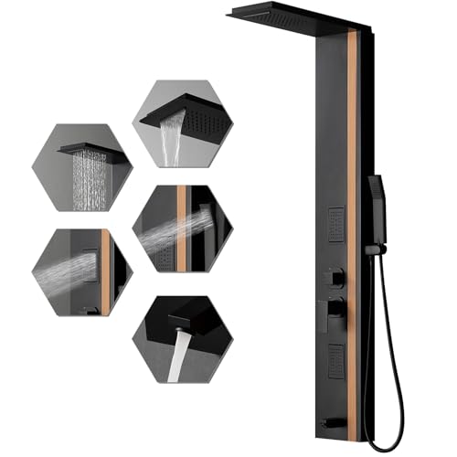 MULTIFUNCTIONAL SHOWER PANEL: Bathroom shower panel with enlarged body spray and waterfall showerhead, you can enjoy a comfortable water flow impact to relieve physical and mental stress.