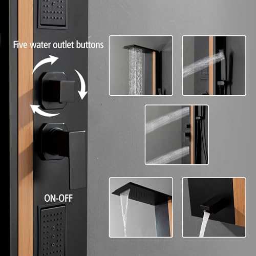 HIGH QUALITY MATERIAL: Shower tower construction of high quality stainless steel material to ensure its durability and reliability. The black finish with bamboo splicing design adds a sense of fashion.