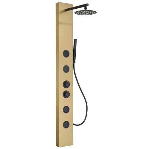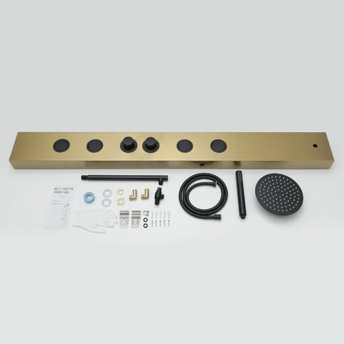 ?Premium Quality Material?The shower panel is made of SUS 304 stainless steel with thickened panel, brass mixing valve and shower diverter valve included, explosion-proof hoses and decorative top cover will make this shower a great upgrade to your batheoom.