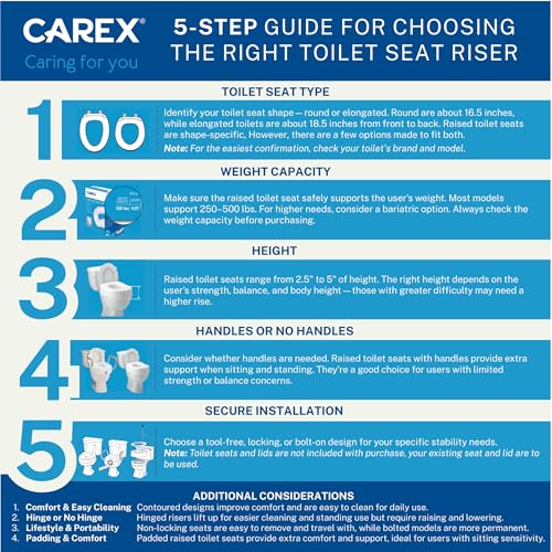 Padded Handles... A raised toilet seat with removable foam padded support rails which gives you a comfortable, non-slip surface for a secure grip and support when sitting or getting off the toilet. Trust Carex, leading brand for toilet risers for seniors