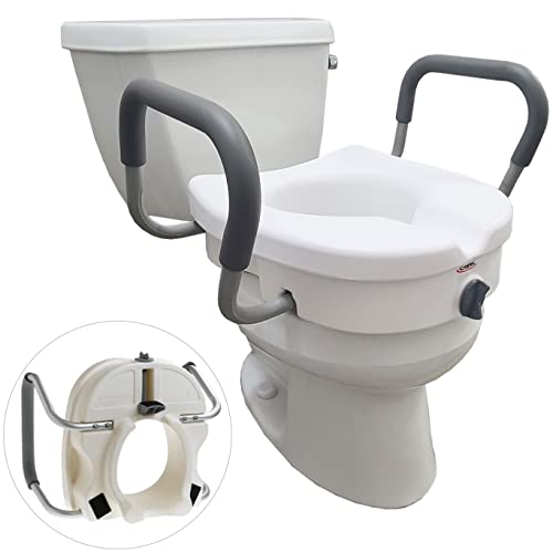 Very Comfortable Raised Toilet Seat With Arms. Our raised toilet seats are very comfortable. Toilet riser with handles is designed to conform to body contours and is ideal for persons 300lbs or less. Safe toilet risers for seniors, elderly, handicap