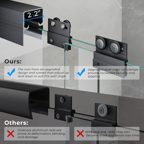 DUAL-WHEEL SMOOTH GLIDE SYSTEM FOR EFFORTLESS OPERATION - This double sliding shower door features an advanced dual-wheel track mechanism, ensuring reliable stability and quiet, smooth movement. The precision roller system promotes easy operation for your bathroom space