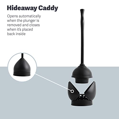 TOILET PLUNGER AND CADDY COMBO: Includes a heavy-duty toilet plunger and coordinating hideaway plunger caddy for an easy and convenient way to take care of toilet clogs as soon as they arise