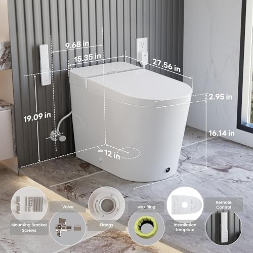 [Automatic Flush]: The smart toilet came with auto flushing( can be turned off), and forgetting to flush won't bother you anymore. Remote & foot sensor flushing available. The lid and seat have a soft-close feature that can be closed without slamming them