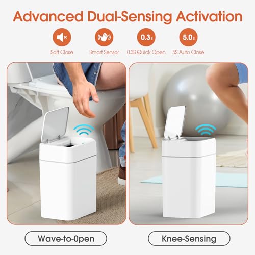 Waterproof: The smart motion sensor garbage can with a lid is made of high-quality PP material, which makes it durable and waterproof, with an IPX5 waterproof rating, it is suitable for bathroom splashes.