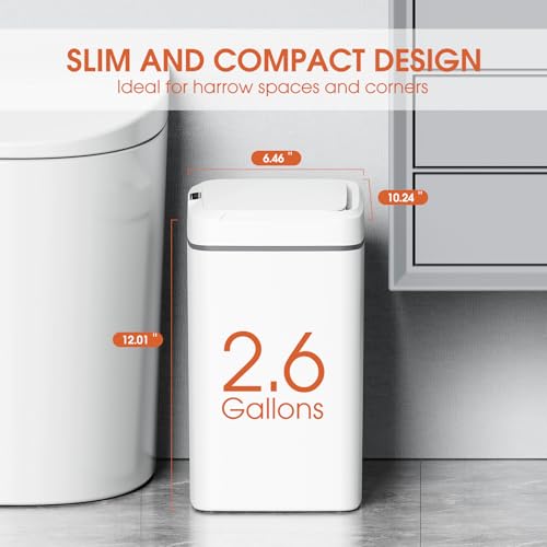 Compact Design: This set includes 2 sleek and modern bathroom trash cans, at 10.24''L×6.46''W×12.01''H and holding 2.6 gallons, these cans offer ample space for disposing of waste while maintaining a slim profile. perfect for small spaces like bathrooms, bedrooms, or offices