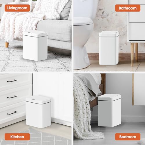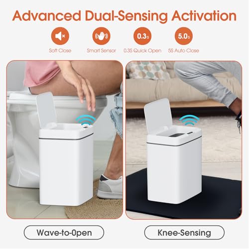 Waterproof: The smart motion sensor garbage can with a lid is made of high-quality PP material, which makes it durable and waterproof, with an IPX5 waterproof rating, it is suitable for bathroom splashes.