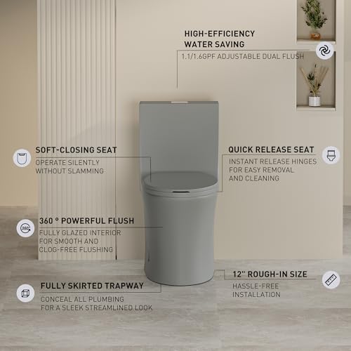 Powerful Dual Flush: WaterSense-certified with a half flush of 1.1 GPF and a full flush of 1.6 GPF, this toilet conserves 20% more water compared to standard models while maintaining cleanliness.