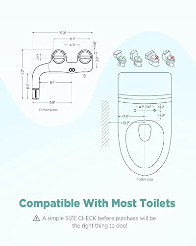 ULTRA-SLIM AND COMPATIBLE: This toilet bidet features an ultra-slim body of 0.23" thin, that is perfectly compatible with your toilet without leaving a huge gap. Our non-electric bidet attachment fits most standard toilets for easy installation. ULTRA-SLIM AND COMPATIBLE: This toilet bidet features an ultra-slim body of 0.23" thin, that is perfectly compatible with your toilet without leaving a huge gap. Our non-electric bidet attachment fits most standard toilets for easy installation.