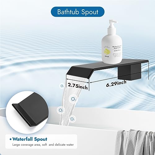 ?High Flow Waterfall Tub Filler Spout?The shower faucets sets complete features a high-flow waterfall bath tub filler spout?allowing you to indulge in a luxurious bath in just a few minutes.