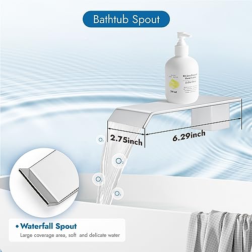 ?High Flow Waterfall Tub Filler Spout?The shower faucets sets complete features a high-flow waterfall bath tub filler spout?allowing you to indulge in a luxurious bath in just a few minutes.