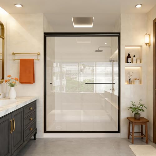 Tempered Safety Glass: Traditional euro style semi-framless double sliding shower door, 1/4 Inches(6mm) thickness clear Glass with And ANSI Z97.1 certification