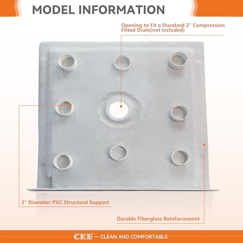 Center Drain: Features a center drain and pre-sloped design for fast, efficient drainage. Compatible with standard 2-inch drain pipes (drain assembly not included)