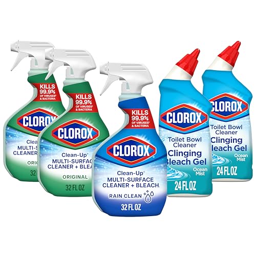 BATHROOM CLEANER: Clinging gel formula with Clorox Bleach, let’s you power through the toughest stains and gets your toilet sparkly clean and bright