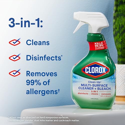 3 IN 1 CLEANER: Clorox Clean-Up Multi-Surface Cleaner with Bleach disinfects (1), cleans and removes 99% of allergens (2), giving you the power of bleach in an everyday cleaner; package may vary